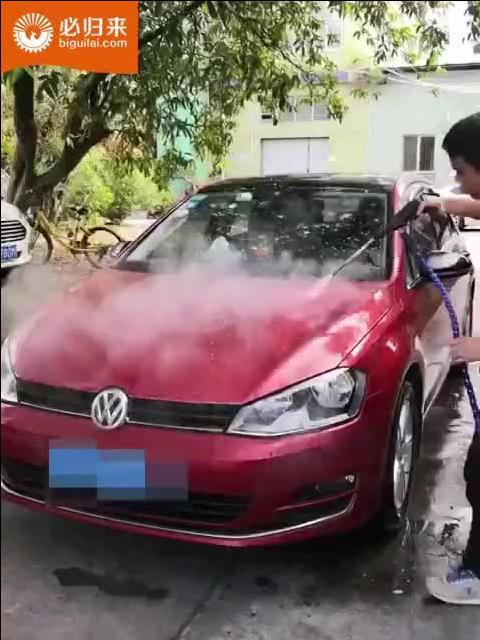 1. 冲洗车身:先用高压水枪冲洗车身,将表面的泥土和污渍冲掉。注意,不要直接用高压水枪对着车漆喷,以免损伤漆面。